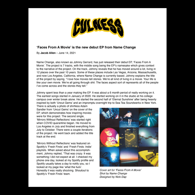 ”Faces From A Movie’ is the new debut EP from Name Change’ – Culness Interview