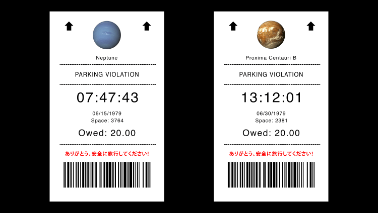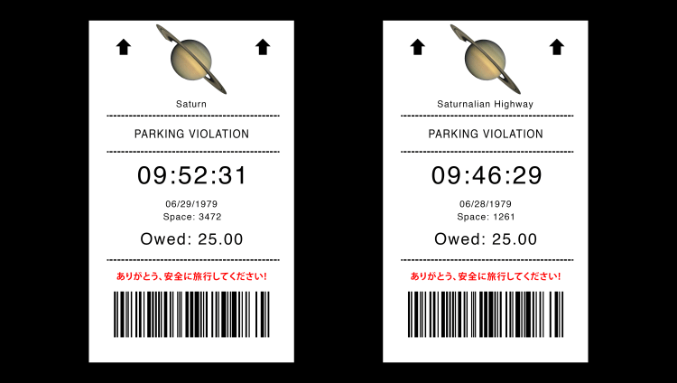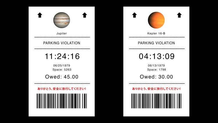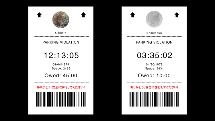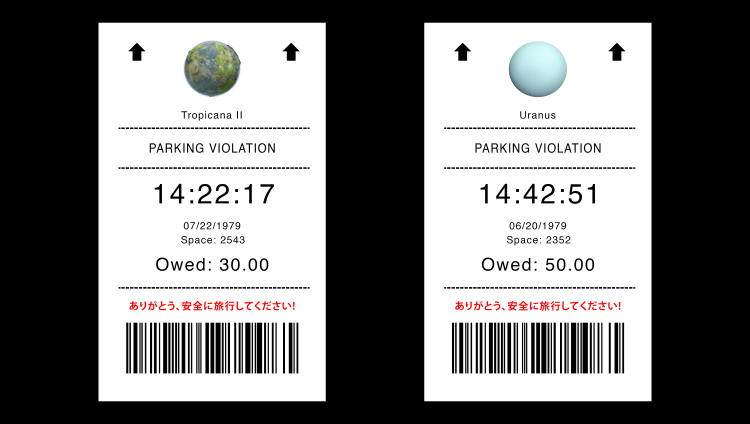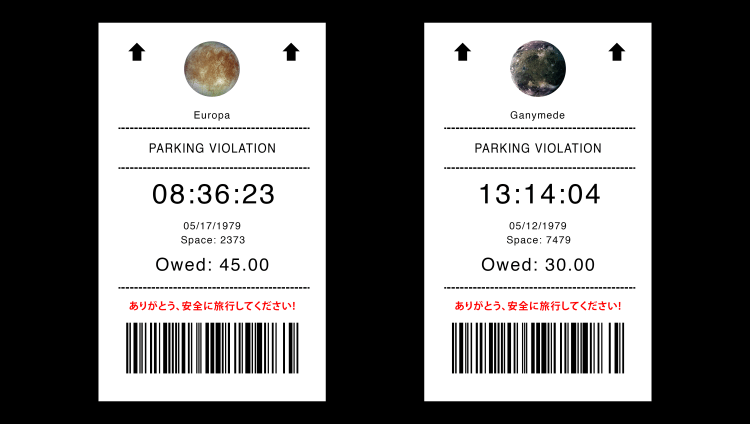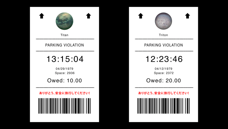‘Dick and Marquis’ Space Parking Tickets graphic design Space parking tickets for ‘Dick and Marquis’ by Will Jackson. Designed by Jacob Allen.