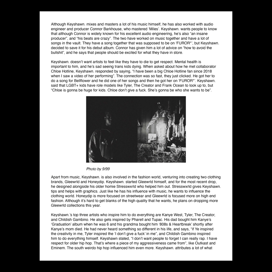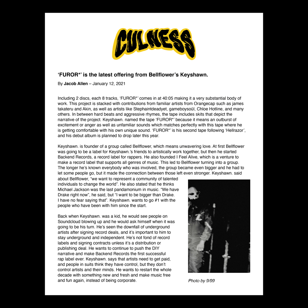 ”FUROR*’ is the latest offering from Bellflower’s Keyshawn.’ – Culness Interview interviews Interview with Keyshawn. for Culness by Jacob Allen. Photos. by 9/99. Written & designed by Jacob Allen.