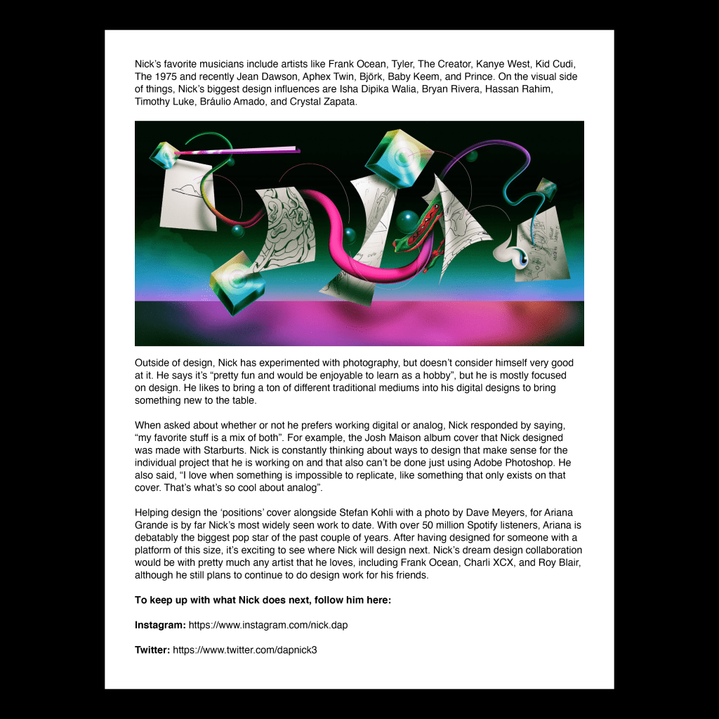 Interview with Nick D’apolito for Culness by Jacob Allen. Including designs by Nick D’apolito and Stefan Kohli. Photo by Dave Meyers. Written & designed by Jacob Allen.
